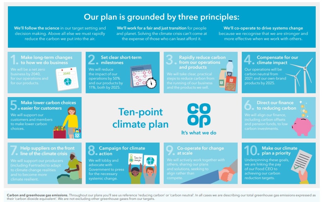 The Co-op is committed to sustainability and has a 10 Point Climate Plan and aim to be net zero by 2040.