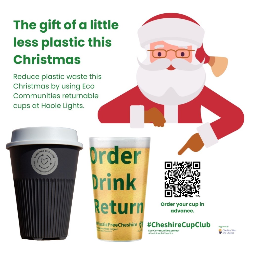 Cllr Adam Langhan told us “As chair of the Hoole Light Committee we are supporting Eco Communities in launching Plastic Free Hoole at this year’s Christmas lights switch on, we hope residents will also support the team by using its reusable cups and glasses via a deposit return scheme, so we can reduce the amount of single use plastic waste from this event in 2023”