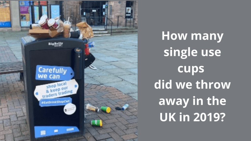 We are all human and ww go out without one of those reusable cups we bought and fancy a take away coffee, so we end up using a single use cup with we then throw away. Cafes are using single use cups which go into general waste or end up in our environment, parks and oceans. If they are branded they can also result in bad press for a business. What about the Carbon Footprint of Single use Vs Reusables?