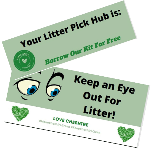 We have litter pick hubs around the region. Use our equipment to clean where you live and then put it back for next time. Join using the kink below to use the equipment and get a code.